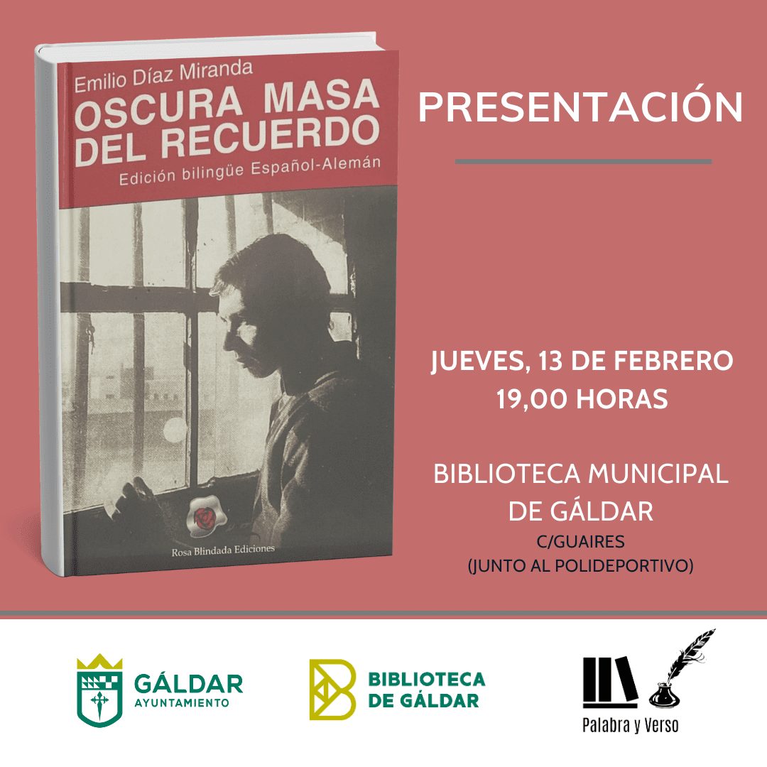 Asociación de Escritoras y Escritores ‘Palabra y Verso’ La Biblioteca de Gáldar acoge la presentación del poemario ‘Oscura masa del recuerdo’, de Emilio Díaz Miranda 11 febrero 2025