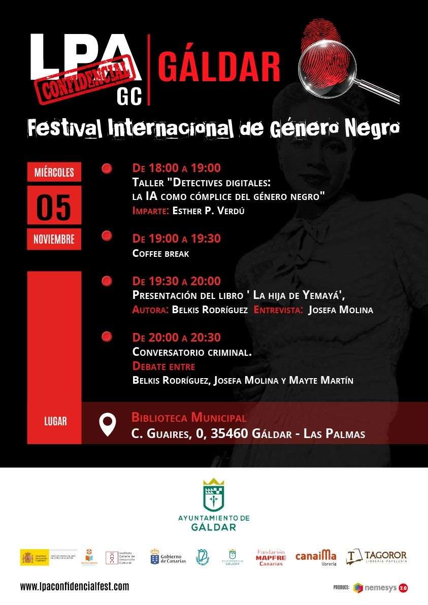 El Festival Internacional de Género Negro LPA Confidencial vuelve a Gáldar este miércoles 3 noviembre 2025
