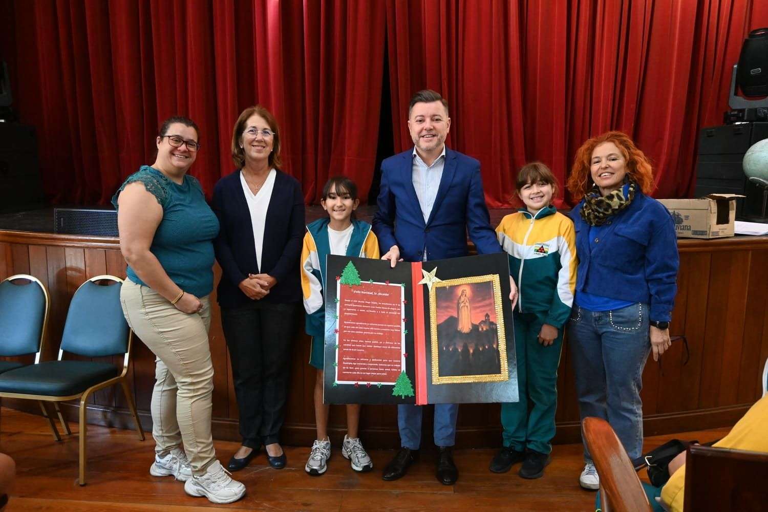 Estudiantes del CEIP Alcalde Diego Trujillo entregan su tarjeta navideña al alcalde Teodoro Sosa Monzón 9 diciembre 2025