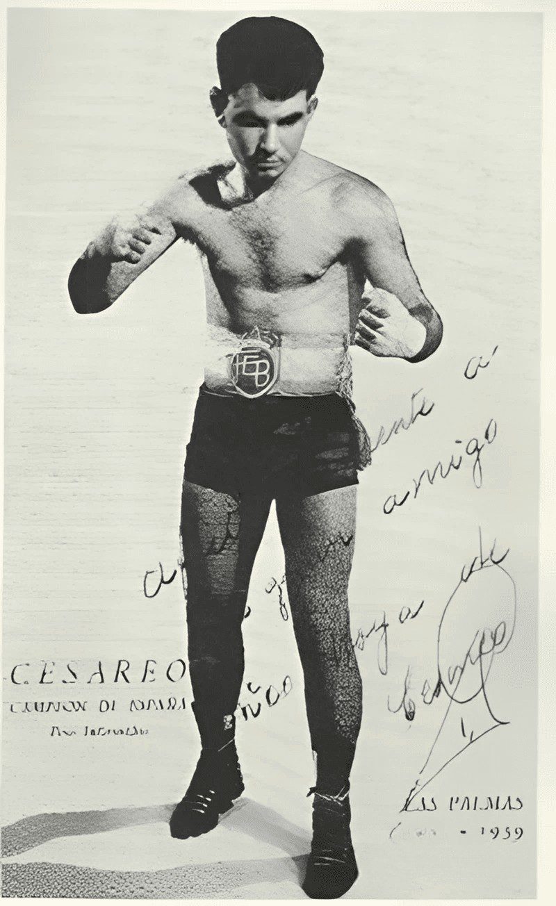 Cesáreo Barrera Moya, actualmente reside en el barrio Teldense de la Pardilla, calculo que debe tener ya casi 83 años, excelente salud y hay que decir de él que, dejó una huella importante en el boxeo español.