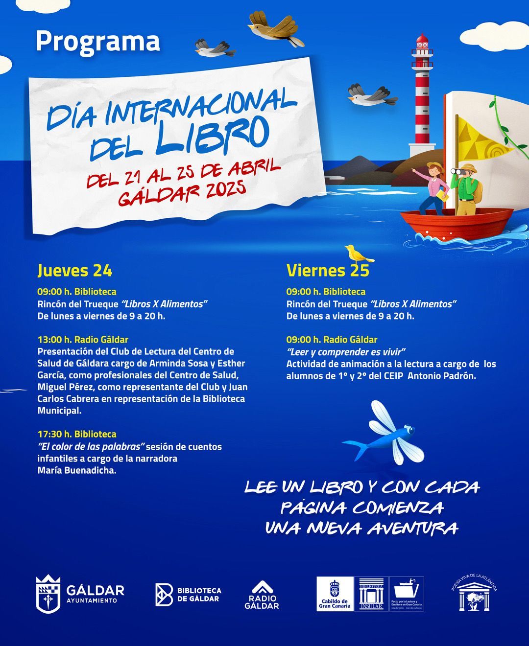 El lunes 21 de abril, la Biblioteca Municipal de Gáldar da el pistoletazo de salida a los actos programados por la Concejalía de Patrimonio Histórico e Identidad, Archivo y Biblioteca del Ayuntamiento de Gáldar, que dirige Carlos Ruiz Moreno, con motivo del Día Internacional del Libro Gáldar 2025.