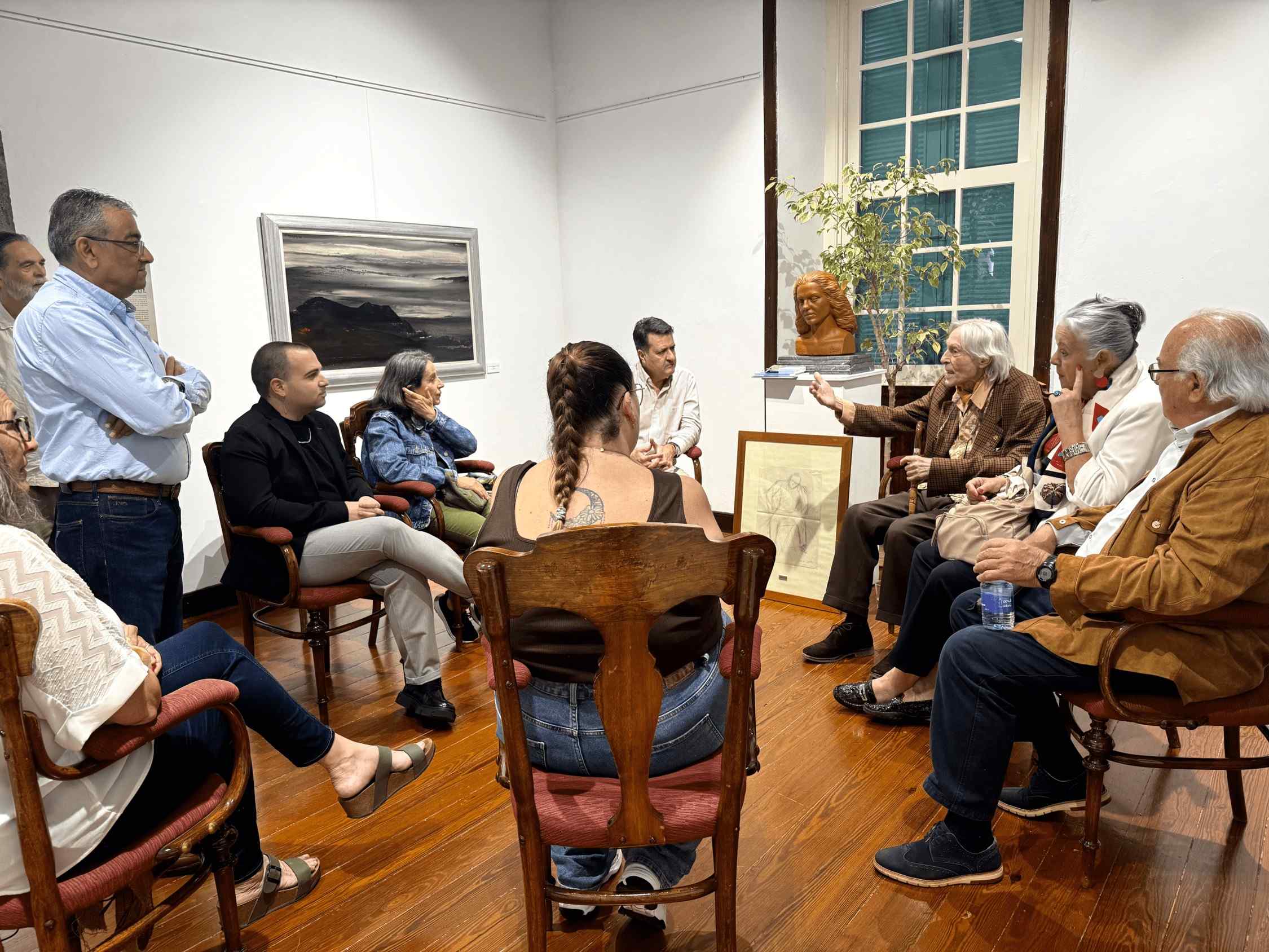 La jornada de clausura contó con la presencia del Concejal de Cultura, Carlos González, y una visita guiada a cargo de Domingo Doreste, presidente de la Fundación Canaria Pino Ojeda, que acercó al público a la trayectoria internacional de la artista.