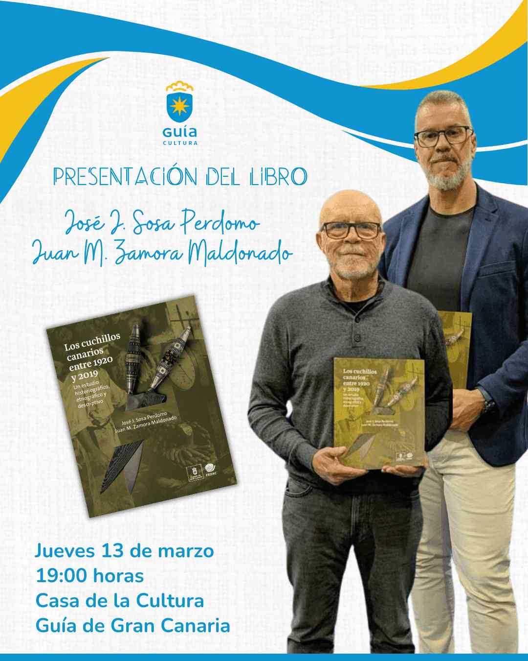 José J. Sosa Perdomo y Juan M. Zamora Maldonado presentarán este jueves, a partir de las 19:00 horas, su obra “Los cuchillos canarios entre 1920 y 2019: un estudio historiográfico, etnográfico y descriptivo” en la Casa de la Cultura de Guía.