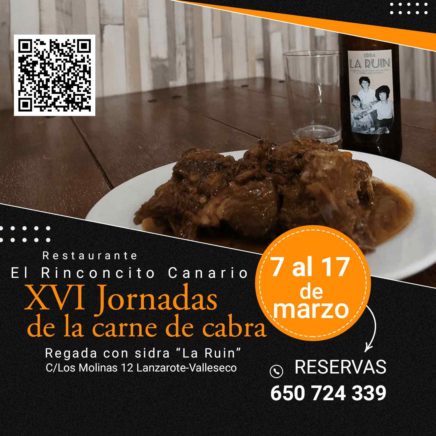 Las personas interesadas en vivir esta experiencia gastronómica única pueden hacer sus reservas llamando al teléfono 650 724 339. No pierdas la oportunidad de disfrutar de la mejor cocina canaria y de la innovadora sidra “La Ruin” en un ambiente acogedor y lleno de tradición.