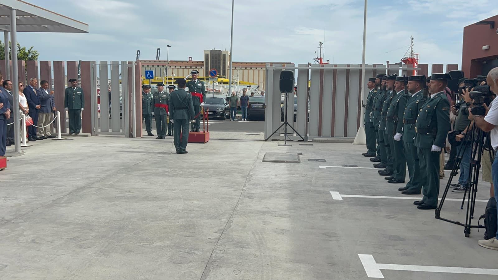 A las 13:00 horas dieron comienzo los actos oficiales, presidido por el Mando de Fronteras y Policía Marítima, en compañía del Delegado del Gobierno, la presidenta de la Autoridad Portuaria y diversas autoridades civiles y militares. La ceremonia se abrió con el solemne izado de la bandera nacional, seguido del descubrimiento de una placa conmemorativa que simboliza el nuevo impulso a las instalaciones.