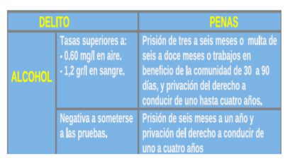 El capítulo IV del vigente Código Penal tipifica los delitos contra la seguridad vial y establece las siguientes penas por la negativa a someterse a las pruebas de alcoholemia: