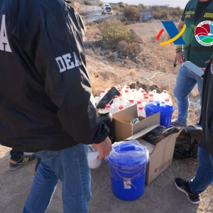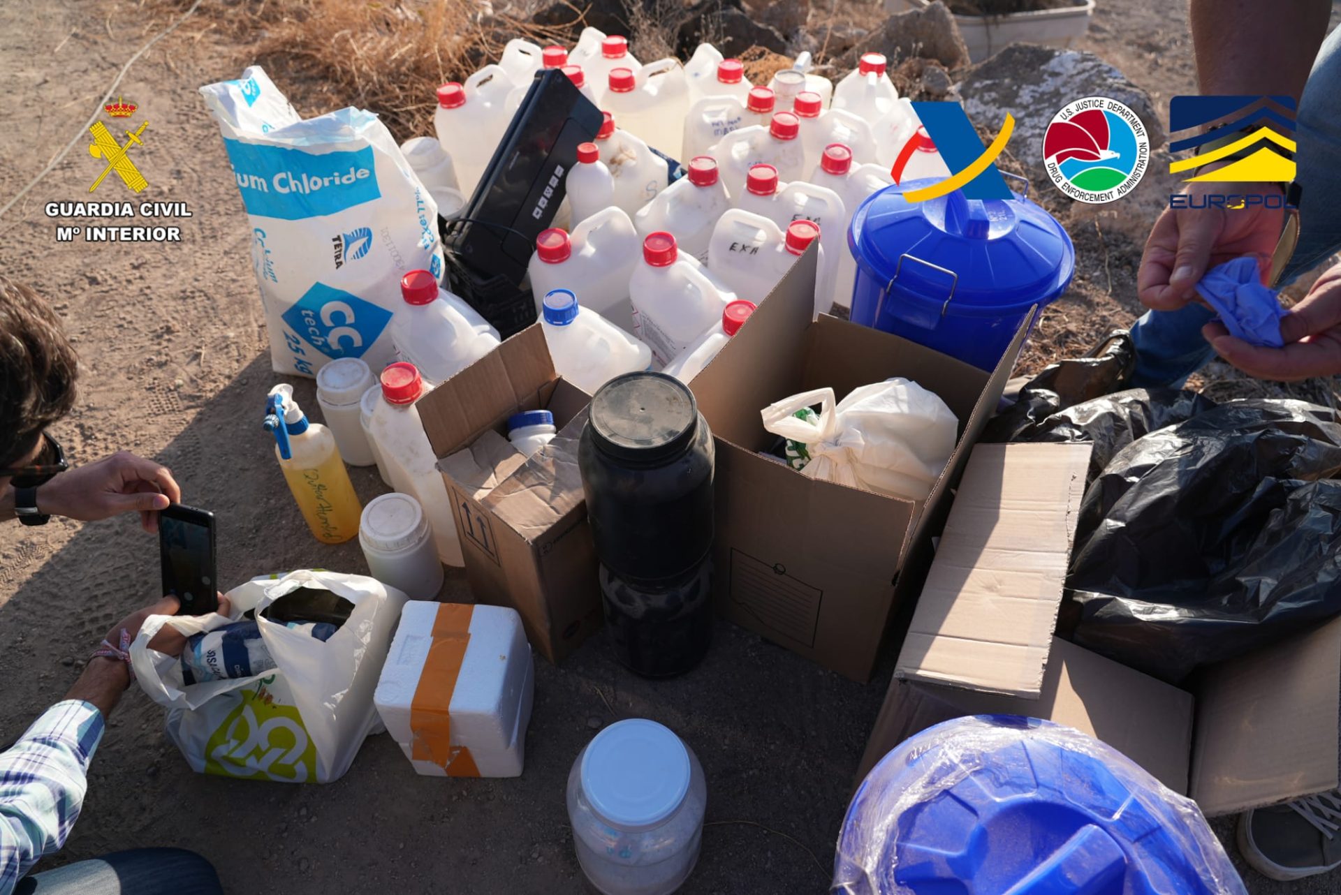 - Intervenido un laboratorio de procesado y corte de cocaína en una finca de Tenerife donde almacenaban gran cantidad de productos químicos altamente nocivos para la salud, así como los utensilios necesarios para el procesado y adulteración de la cocaína