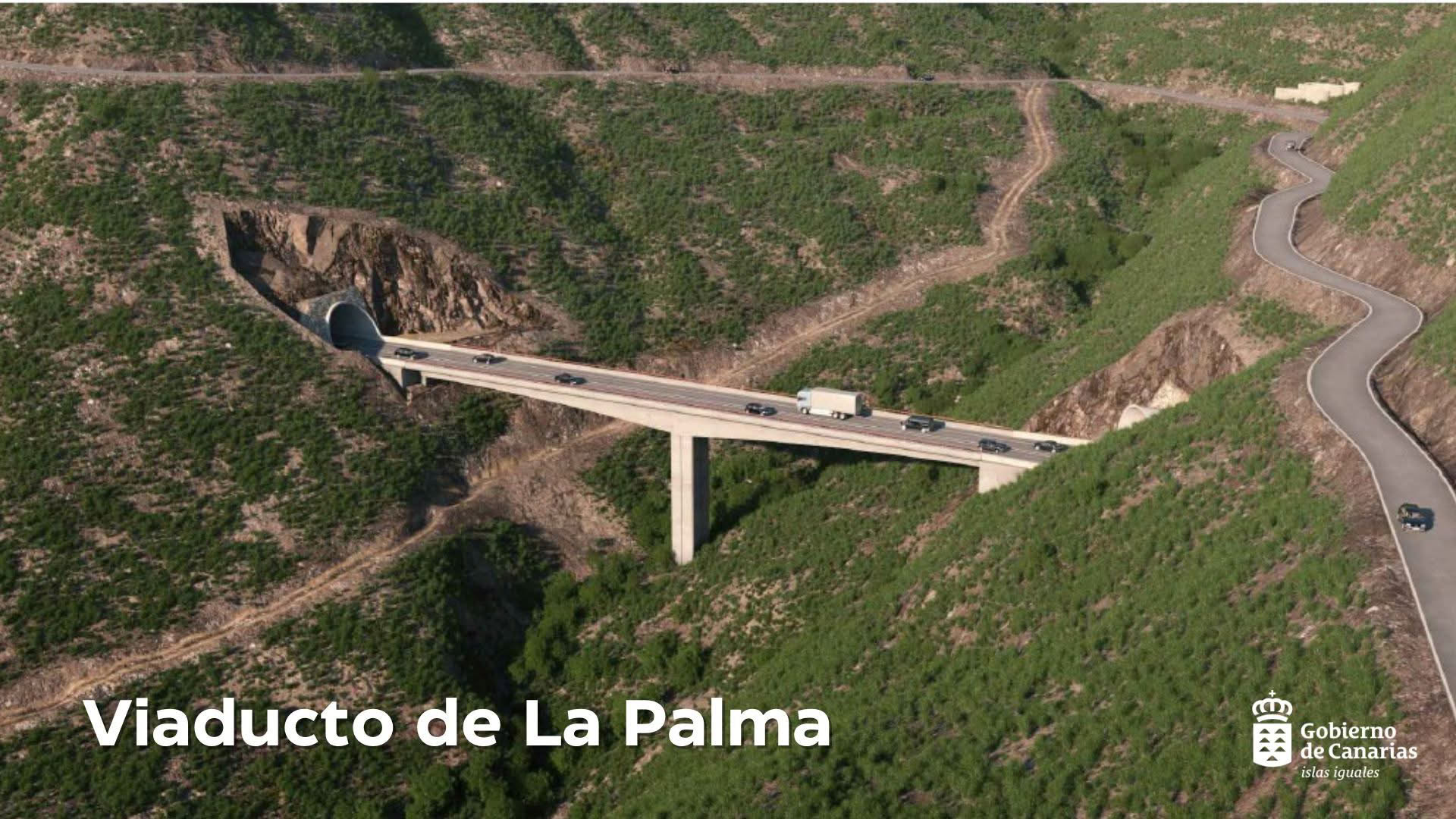 A este puente del barranco de La Palma, de 110 metros de longitud y 28 de altura, se le ha reducido sus pilares de dos a uno. El plazo de ejecución es de 14 meses, si bien ya desde de hace varios meses se ha venido trabajando en la carretera de acceso al lugar donde se ejecutan las obras que unirán las bocas de dos de los siete túneles, perforados desde el 2023 pero pendientes del asfaltado y de los sistemas de servicio de los mismos, entre otras dotaciones.