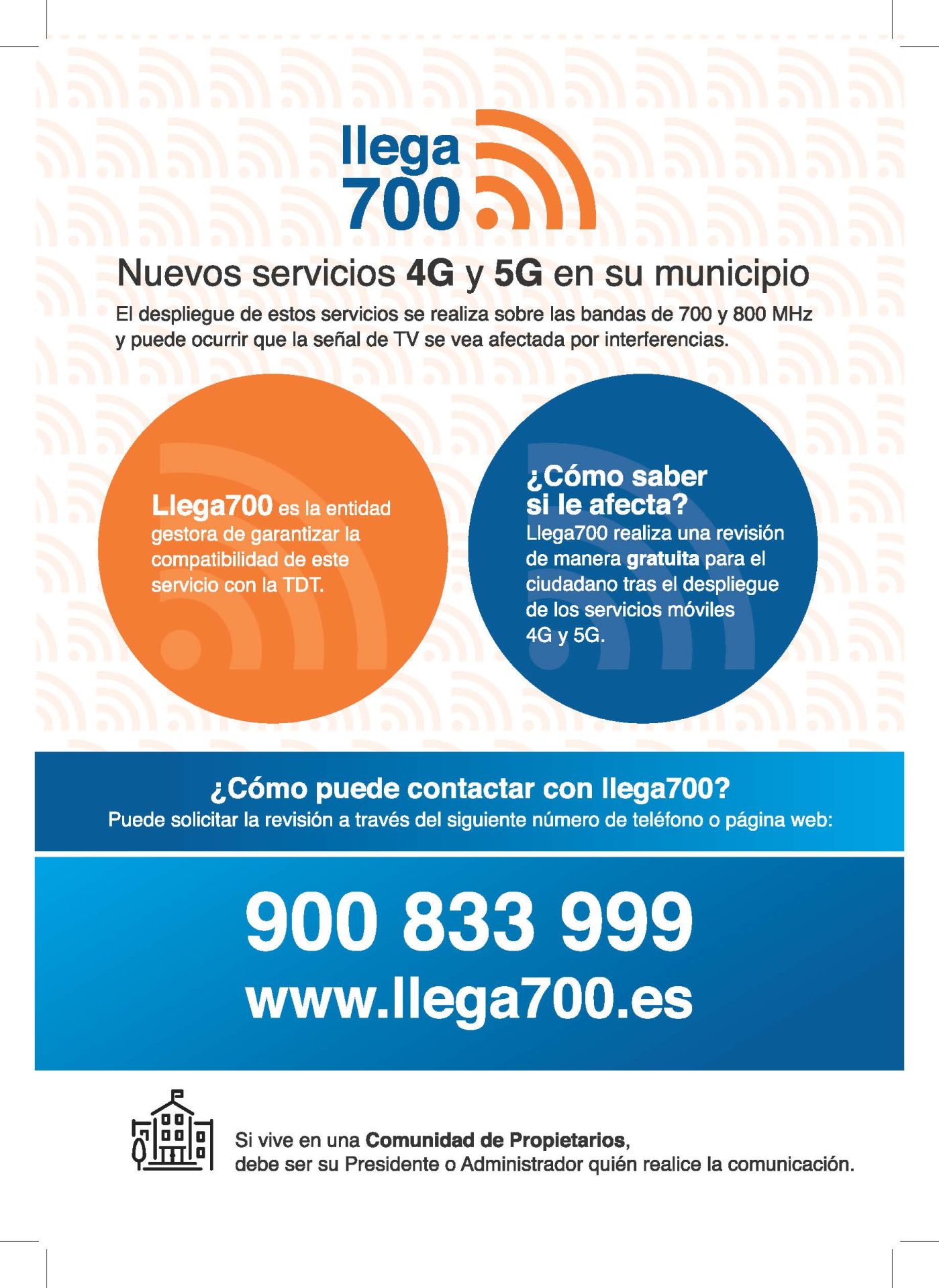 *Llega700 es la entidad gestora, contratada por los operadores de telefonía móvil, encargada de ofrecer los servicios que garantizan la compatibilidad entre la puesta en marcha de la emisión móvil 4G y 5G en las bandas de 800 y 700 MHz, respectivamente, y la recepción del servicio de TDT.