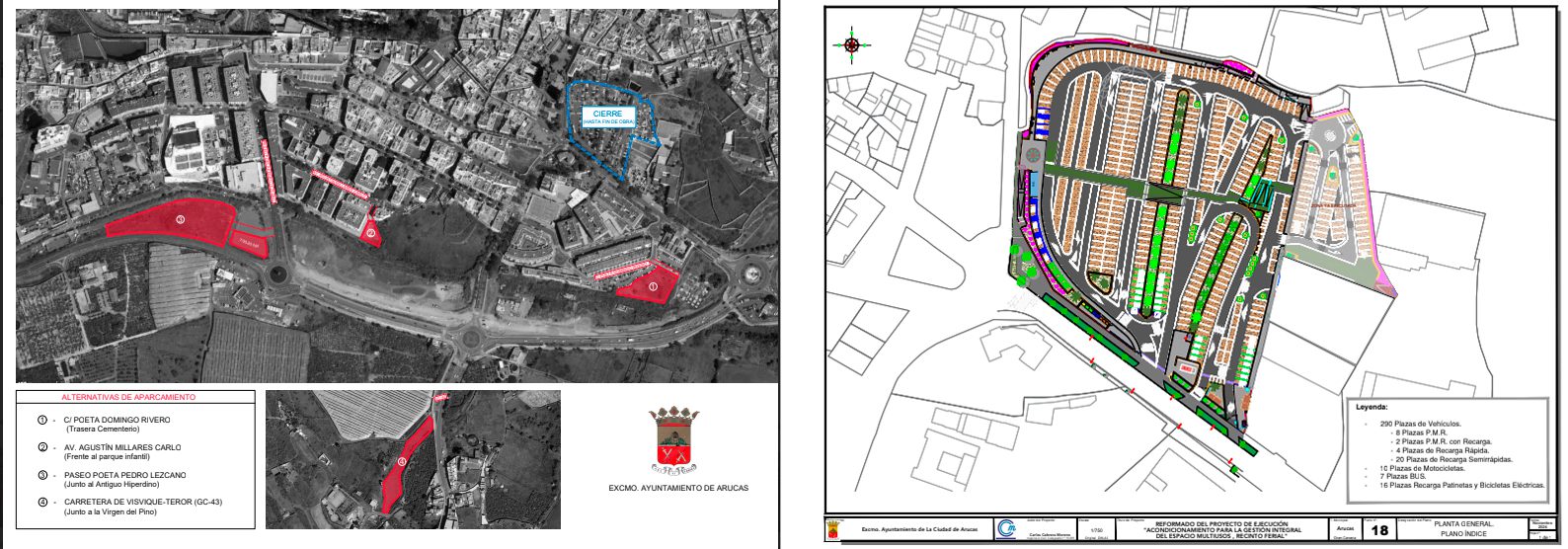 Durante la ejecución de los trabajos, el recinto permanecerá cerrado, por lo que se han habilitado distintos espacios que pueden servir para estacionar de forma provisional, que se suman a los ya existentes y que en conjunto superan el número de plazas de estacionamiento del conocido como “Recinto Ferial”.