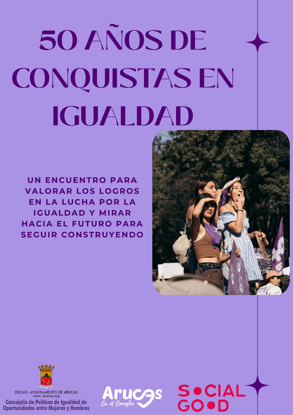La Concejalía de Políticas de Igualdad entre Mujeres y Hombres del Ayuntamiento de Arucas, organiza el taller «50 Años de Conquistas» con motivo de las 5 décadas de democracia en España que será impartido por Social Good. Durante la sesión se recorrerá una línea del tiempo con los principales hitos conquistados por las mujeres desde 1975 hasta la actualidad. Además, se destacará cómo estos avances se han vivido en el municipio, rescatando el papel de asociaciones, colectivos y mujeres del municipio que han contribuido a transformar la realidad local.