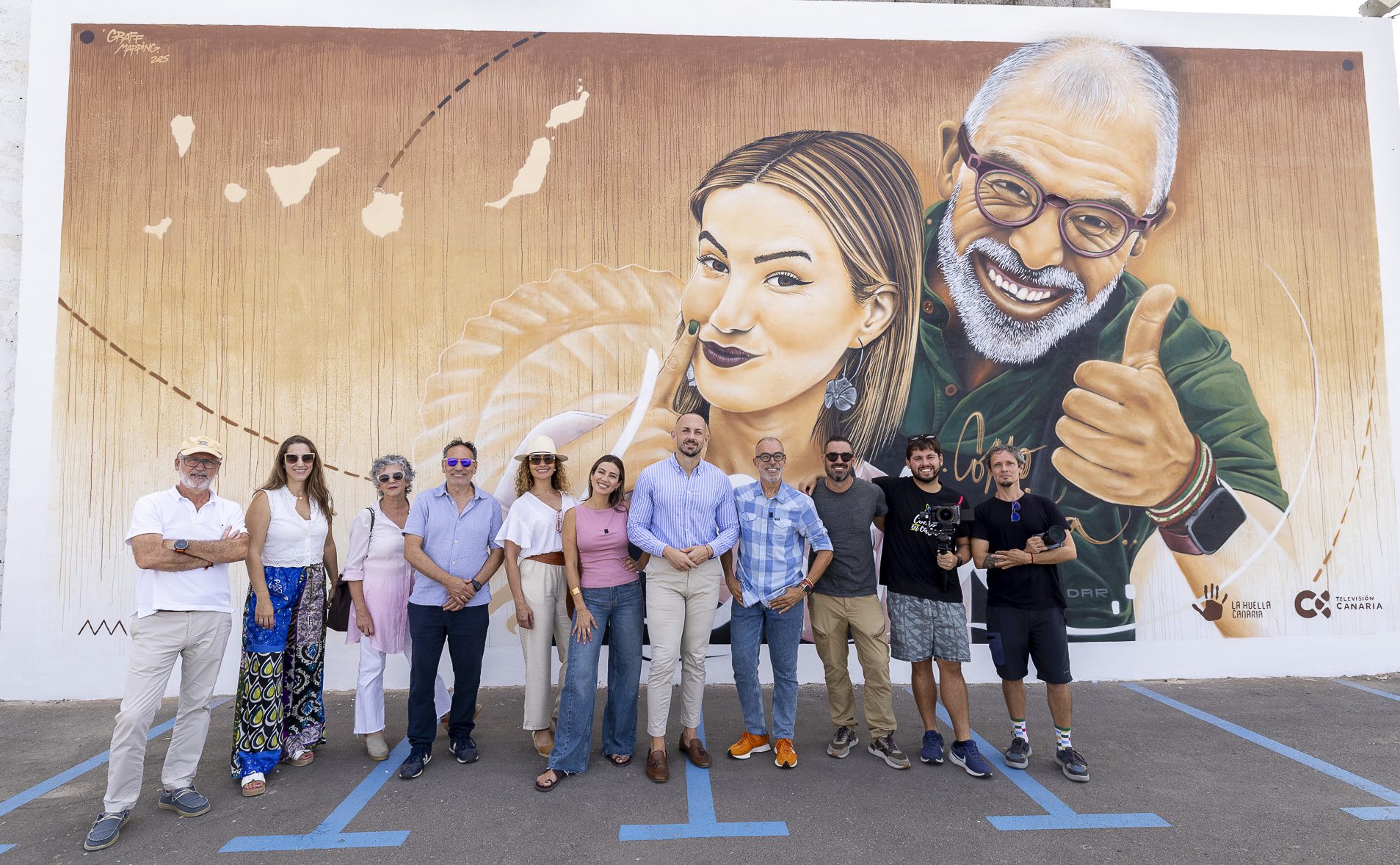 El mural, de 9 metros de ancho por 5 metros de alto y elaborado con pintura plástica y spray, será parte visible de la imagen promocional del programa durante toda la temporada, que se emite diariamente en la televisión pública canaria.