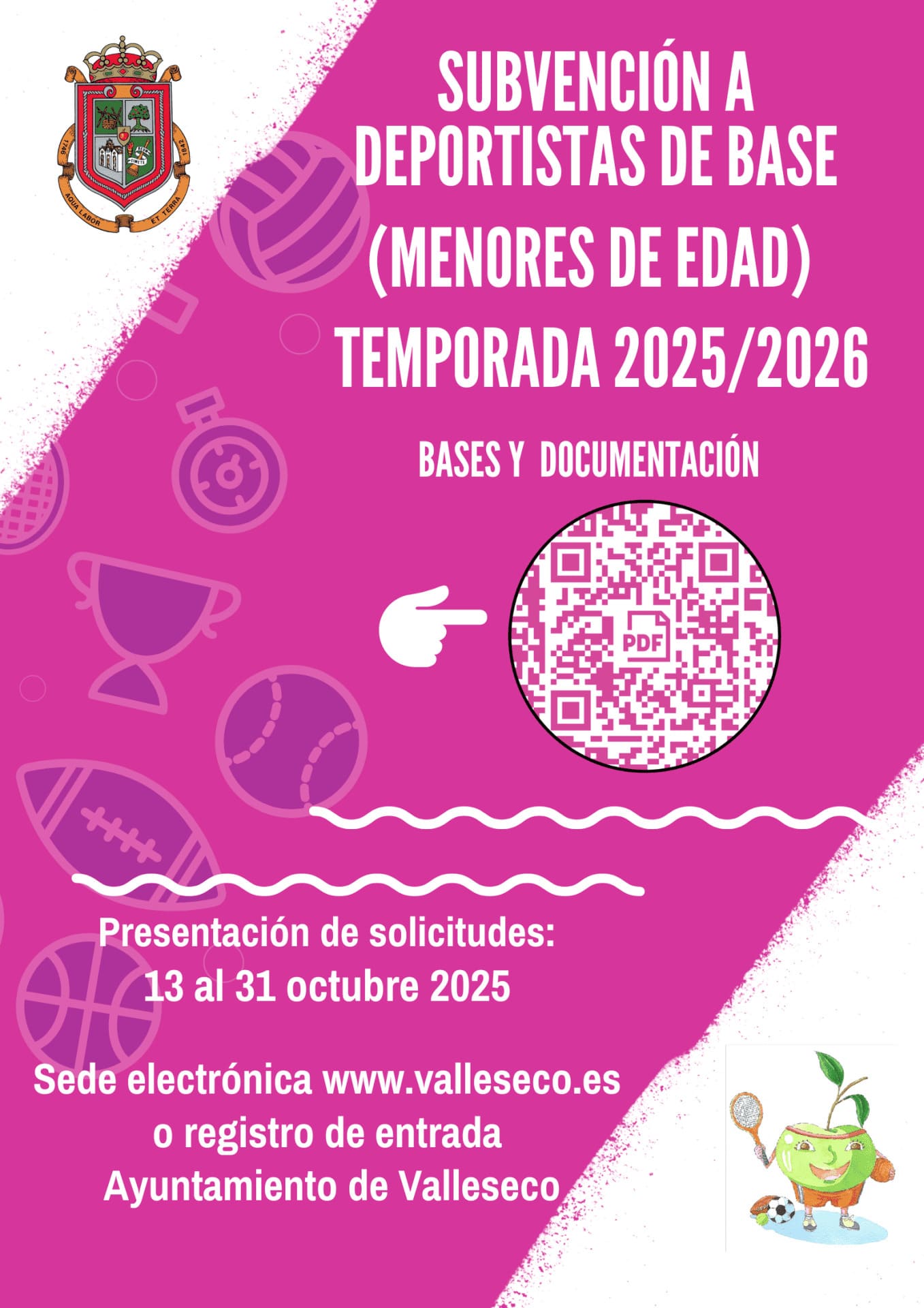 La convocatoria destinada al deporte base busca respaldar a a la población menorde 18 años empadronadas en Valleseco, que pertenezcan a clubes deportivos del municipio o, en caso de no existir club en su modalidad, practiquen su disciplina en otros municipios.