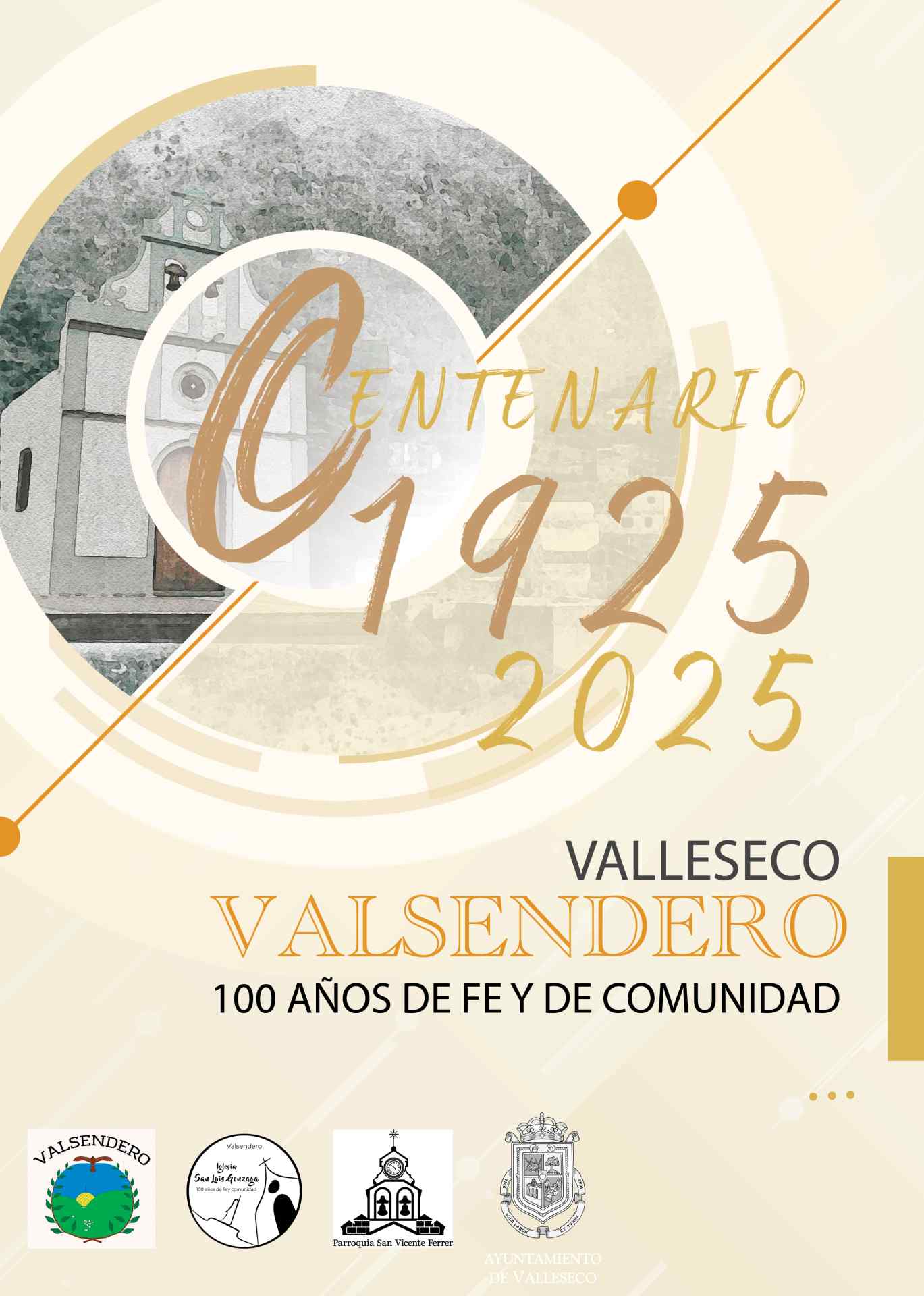 El Ayuntamiento de Valleseco, a través de las Concejalías de Cultura y Festejos, conmemora el centenario de la Ermita de Valsendero con un completo programa de actos y la presentación de una obra histórica que recoge el devenir del barrio y su emblemático templo entre los años 1925 y 2025.