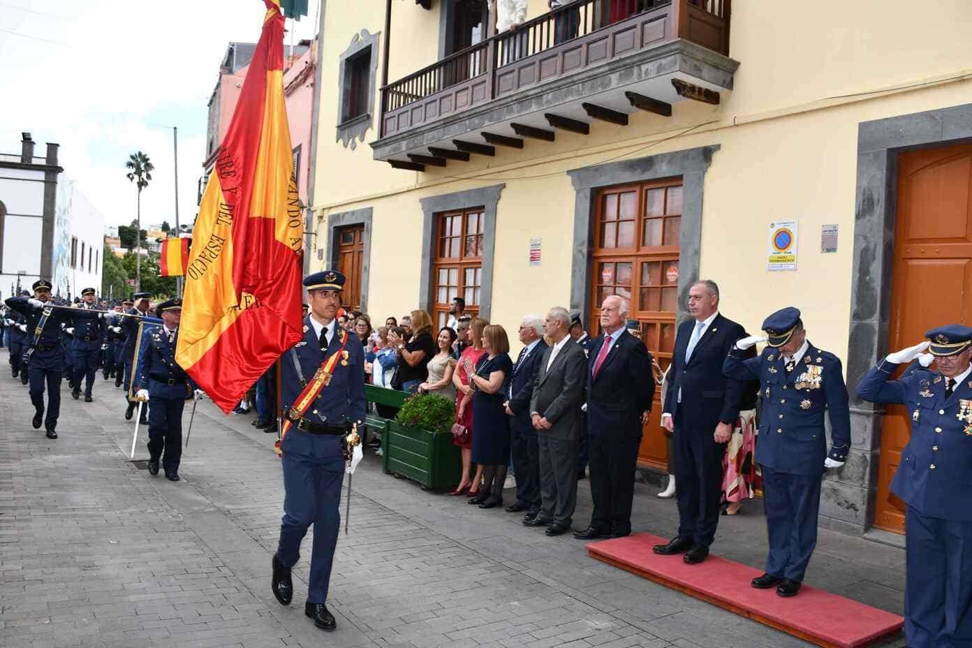 El acto comenzó con la llegada del coronel jefe de la ACGMACAN, Carlos Forcano Forés, acompañado por el alcalde de la Villa de Firgas, Vicente Alexis Henríquez Hernández. Tras recibir los honores de ordenanza, el coronel Forcano pasó revista a la fuerza participante, compuesta por una Escuadra de Gastadores y tres secciones de la Agrupación del CGMACAN, así como la Unidad de Música del Mando Aéreo de Canarias y los guiones de las unidades del MACAN ubicadas en Gran Canaria.