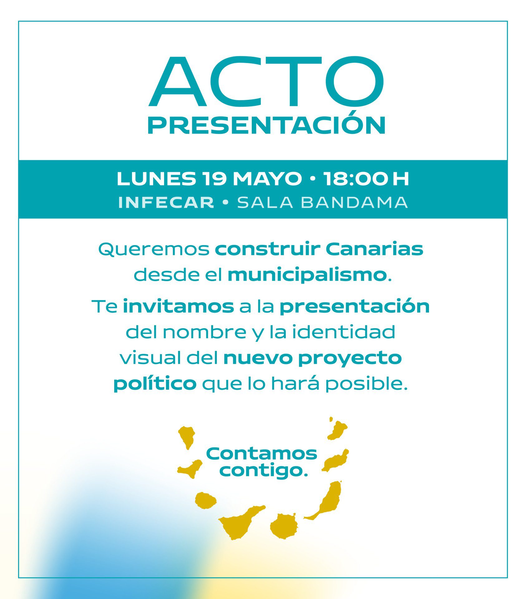 La Institución Ferial de Canarias (INFECAR) acogerá el próximo lunes el acto público de presentación del nombre y la imagen del nuevo proyecto político promovido por los alcaldes, cargos públicos y dirigentes independientes y renovadores del nacionalismo progresista de Canarias.