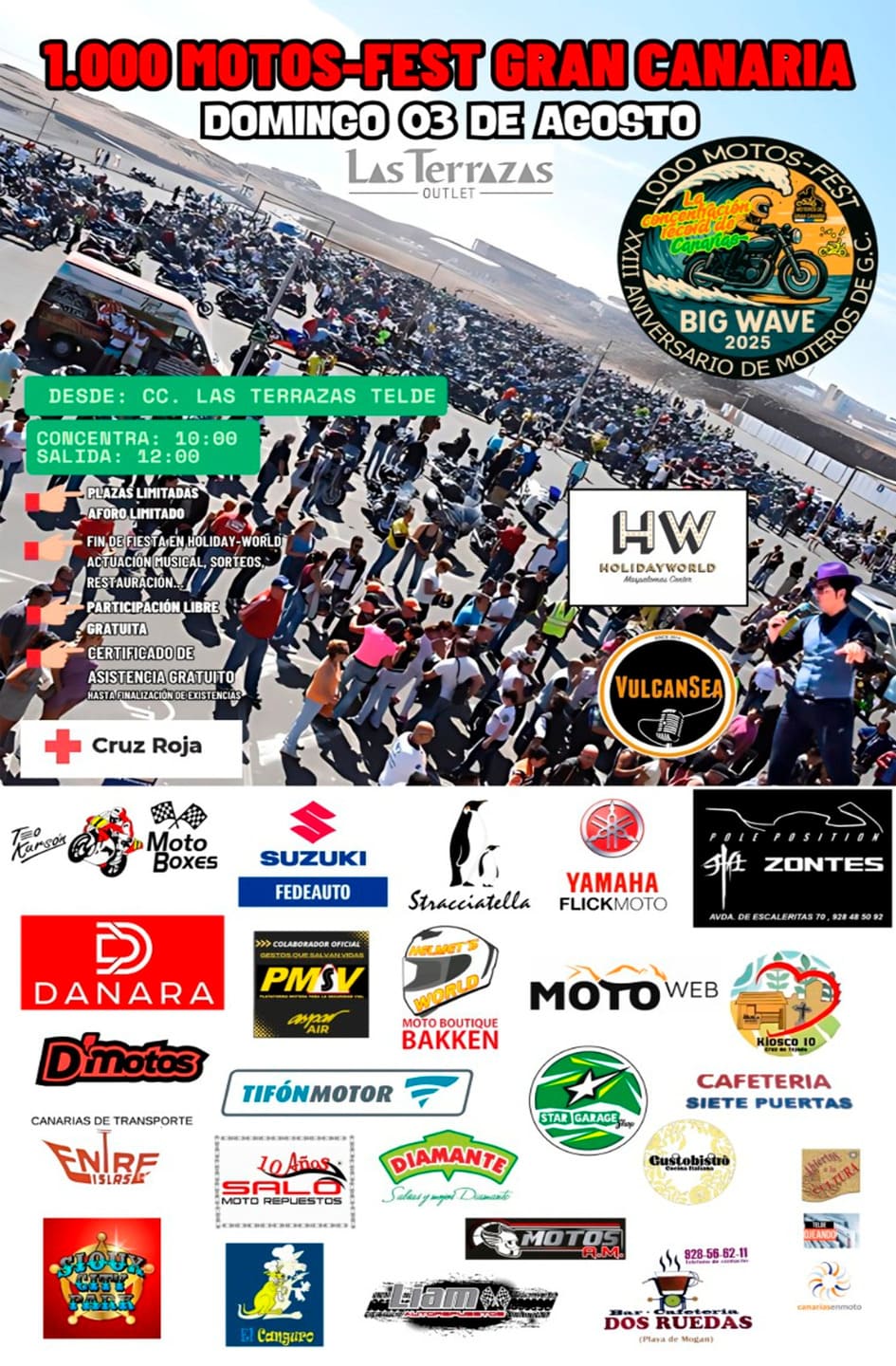 El colectivo Moteros de Gran Canaria está de celebración por su XXIII aniversario y lo festeja por todo lo alto con la organización del 1.000 Motos-Fest Gran Canaria, un evento que se ha consolidado como la concentración motera récord de Canarias y que este año promete ser más espectacular que nunca. La cita, ineludible para todos los amantes de las dos ruedas, tendrá lugar el próximo domingo, 3 de agosto, en una jornada que unirá pasión, música, formación y compañerismo.