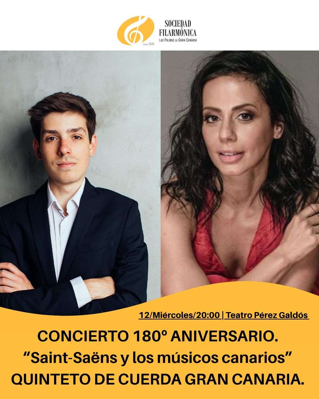 Como broche de oro al Foro Noviembre, la Sociedad Filarmónica celebra el Concierto 180º Aniversario, titulado “Saint-Saëns y los músicos canarios”, un homenaje a la época dorada de la institución, liderada por el maestro Bernardino Valle, marcada por la influencia y presencia del compositor francés Camille Saint-Saëns en la isla.