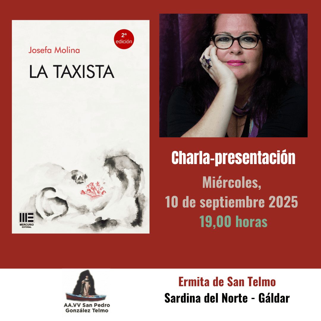 El barrio de Sardina del Norte acogerá el próximo miércoles, 10 de septiembre, una charla-presentación sobre ‘La Taxista’, última novela de la periodista y escritora de Gáldar, Josefa Molina, dentro de las actividades programadas como motivo de la celebración de sus fiestas patronales en honor a San Pedro González Telmo.